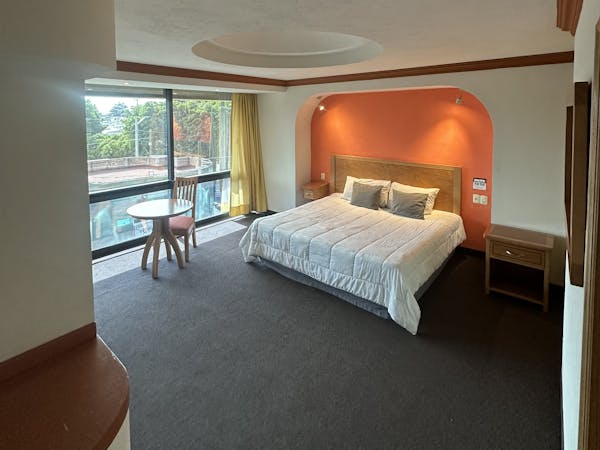 La Habitación Tipo Suite del Hotel Florencia es la habitación con un espacio interior superior a todas nuestras habitaciones. Nuestra suite tiene dos ambientes, en el primero usted encontrara una pequeña sala recepción que servirá para su descanso o bien para recibir a sus visitas, en el segundo ambiente encontrara la habitación con una mesa de trabajo y otro sofá de descanso, toda la suite esta finamente decorada en tonos cálidos y madera clara, cuenta con una cama King Size, destacan de su equipamiento.